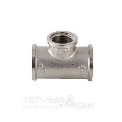 Тройник VALTEC латунный никелированный с внутренней резьбой 1" Тройник латунный никелированный внутренняя резьба 1"