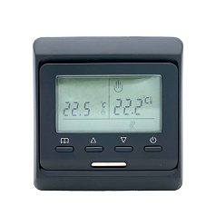 Терморегулятор Е- 51.716 электронный, программируемый с датчиком пола Терморегулятор Е- 51.716 ЧЕРНЫЙ электр.,програм.,датчик пола,16А, (до 15 кв.м-3,5кВт) от +5 до +50С