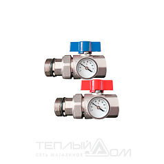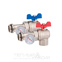 Кран & шаровой угловой с американкой для коллектора с термометром 1'' Кран шаровой угловой с американкой для коллектора с термометром 1'' &